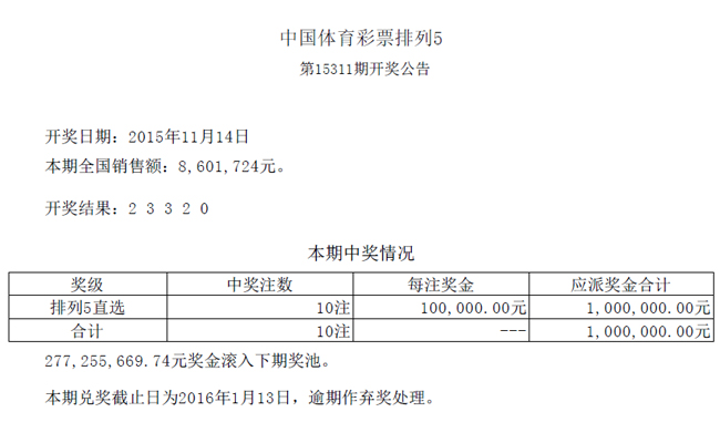 开奖公告