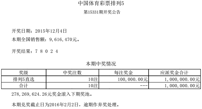 开奖公告