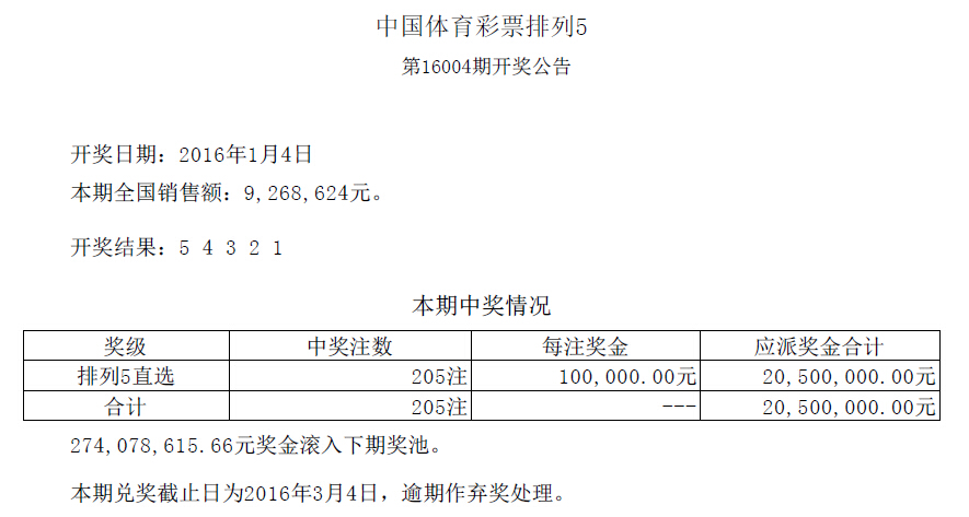 开奖公告