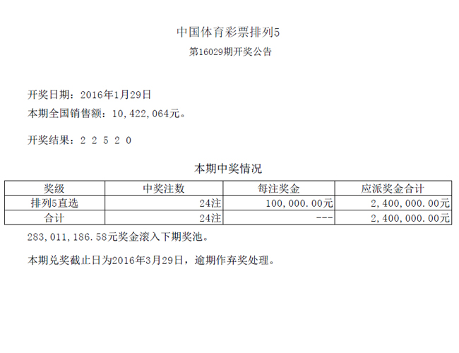 开奖公告
