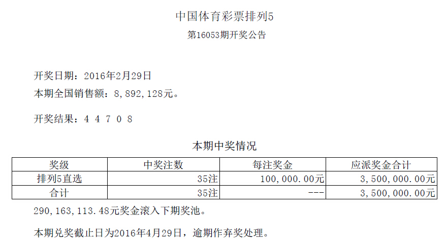 开奖公告