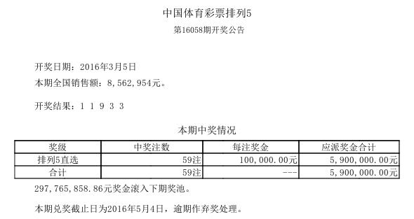 开奖公告
