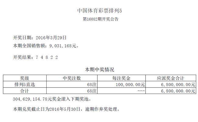 开奖公告