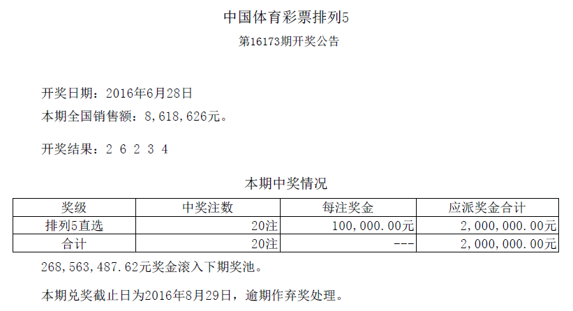 开奖公告