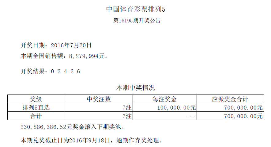 开奖公告