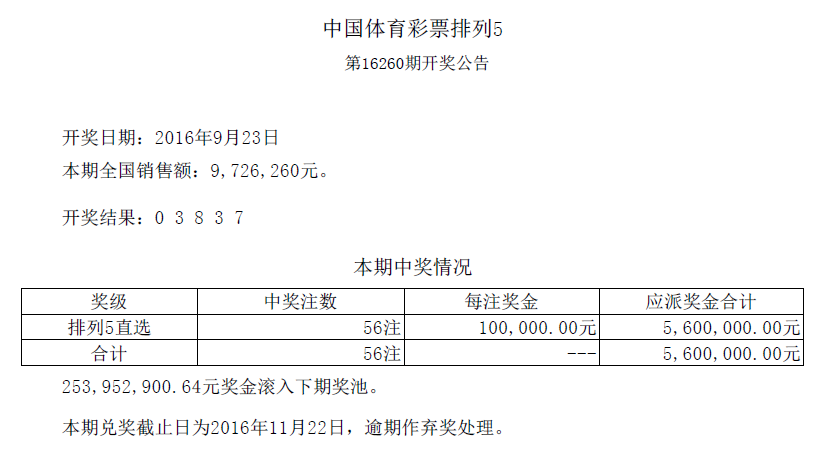 第16260期