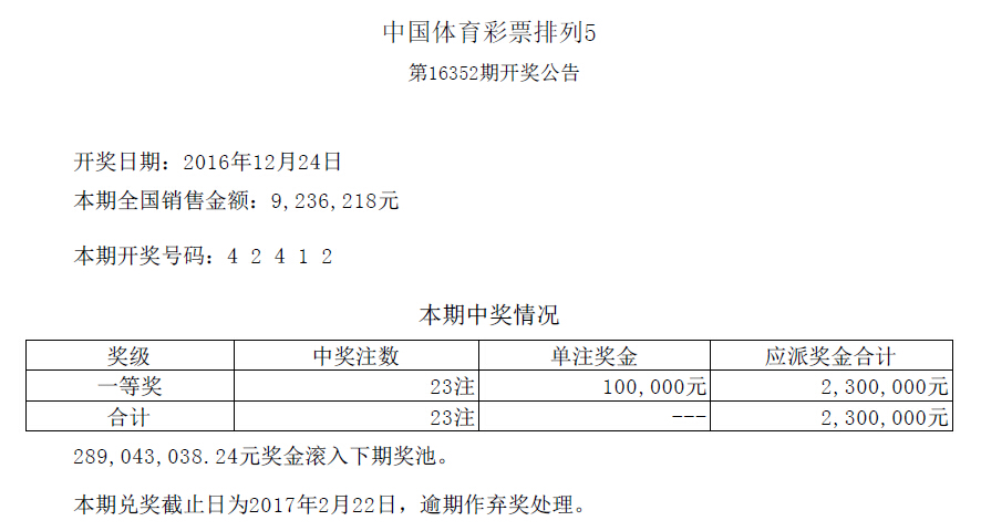 > 开奖公告
