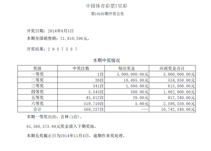 开奖公告