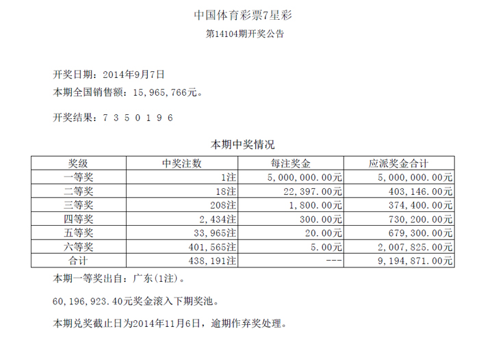 开奖公告