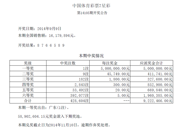 开奖公告