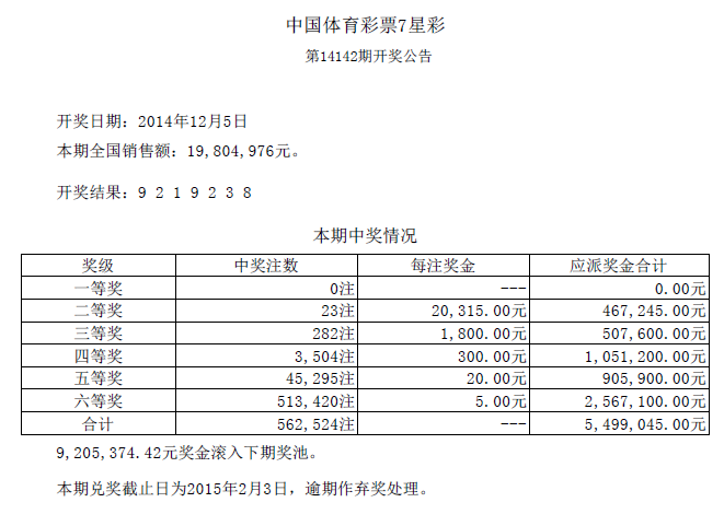 开奖公告