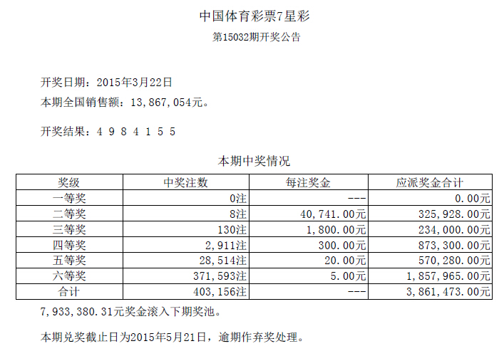 开奖公告
