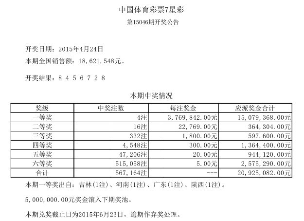 开奖公告