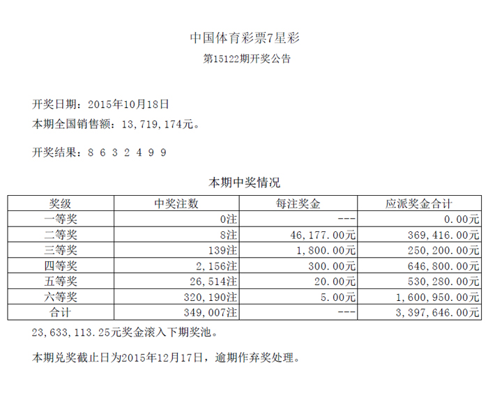 开奖公告