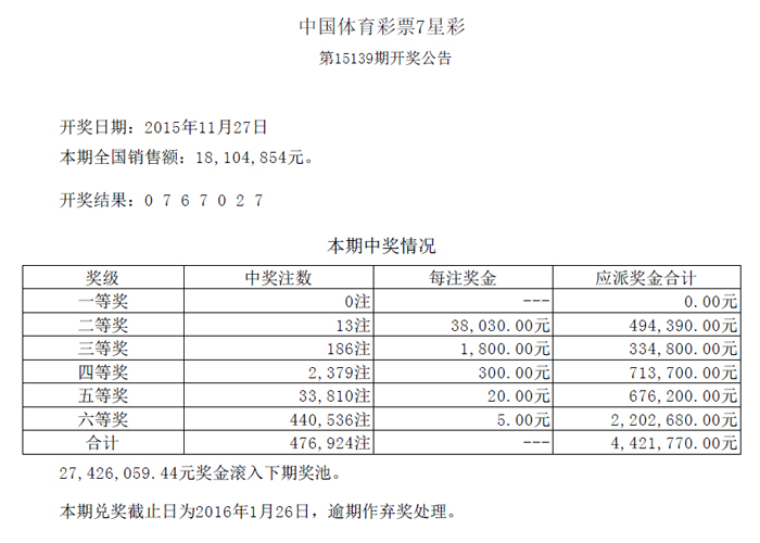 开奖公告