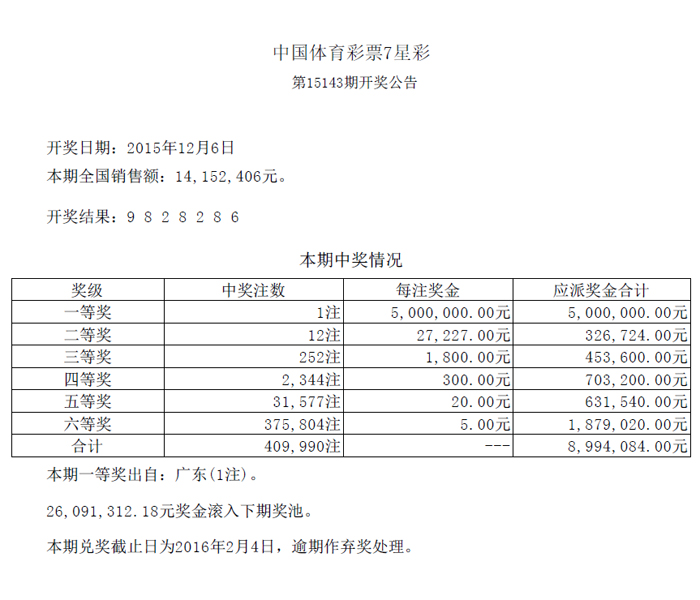 开奖公告