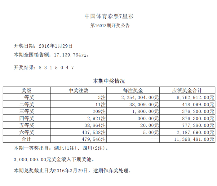 开奖公告
