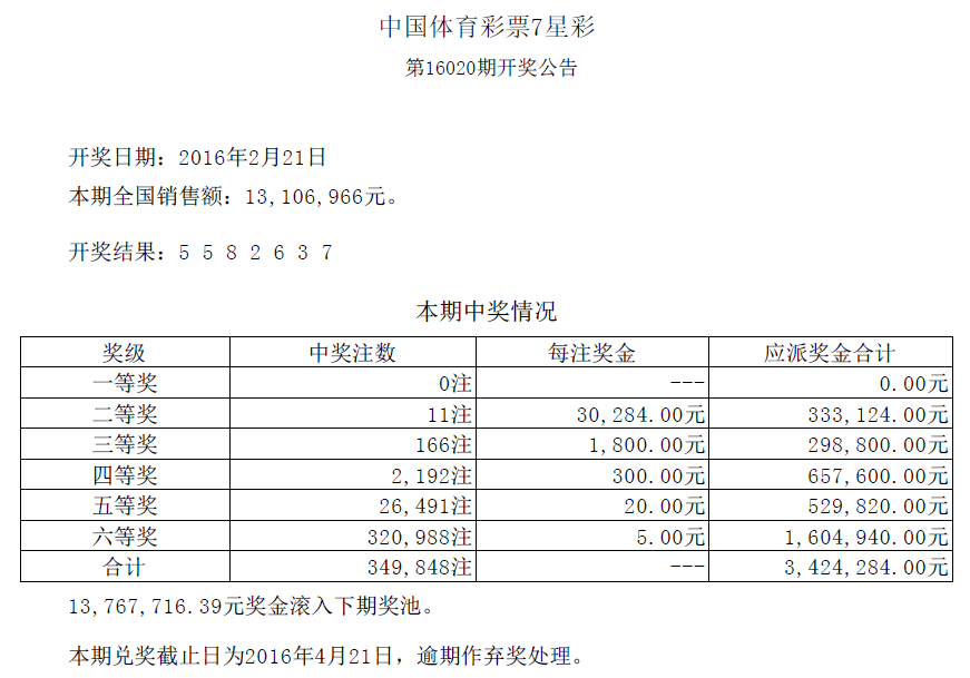 开奖公告