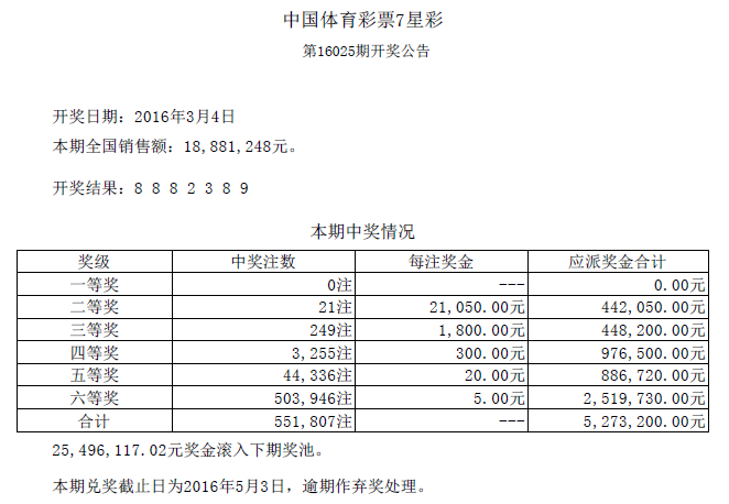 开奖公告