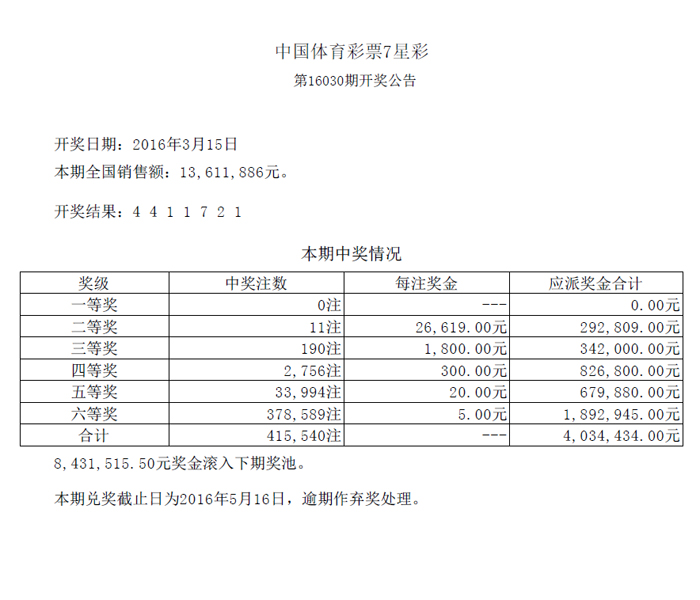 开奖公告