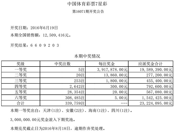 开奖公告