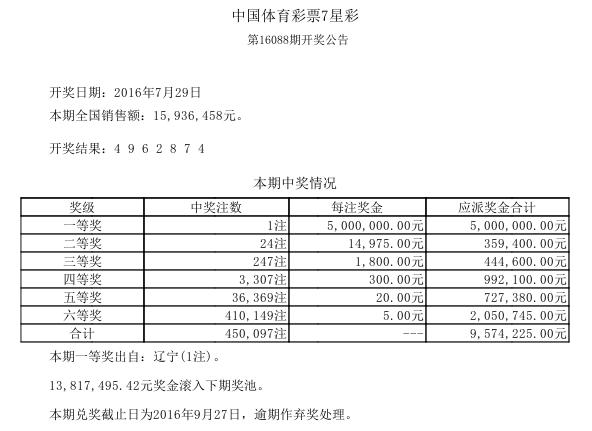 开奖公告