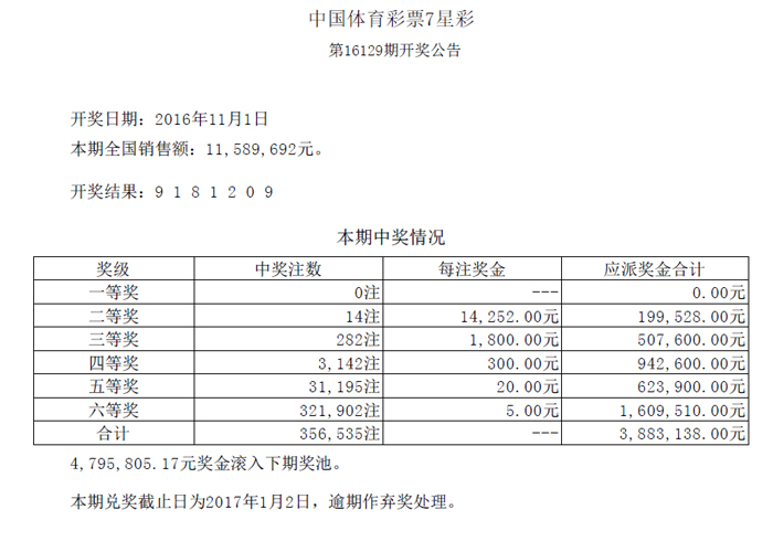 开奖公告