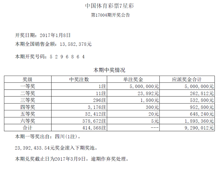 > 开奖公告