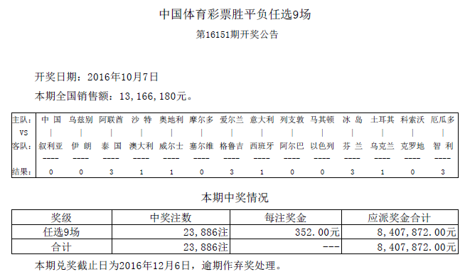 开奖公告
