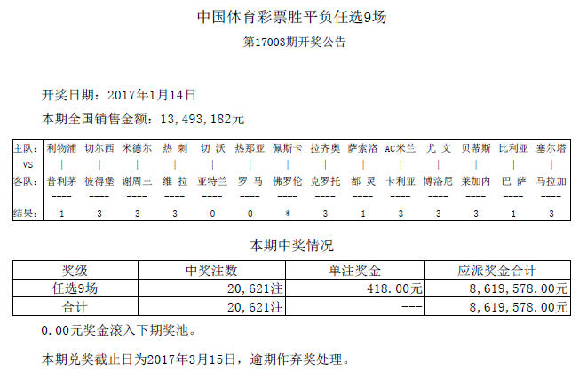 > 开奖公告