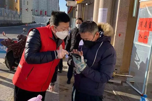 “您在家稍等一下,我现在就把午饭给您送上去,您把垃圾放到门口,我上去帮您拿下来倒了”!每天刘虎同鲁银社区防疫工作人员密切关注疫情最新动态、积极宣传和传递正能量,详细登记进出车辆及人员信息,仔细测量居民体温,引导居民不串门、不聚集、做好自我防护。对于正在隔离的人员,还要为他们送食物、倒垃圾,努力帮助居民解决生活中的实际困难。