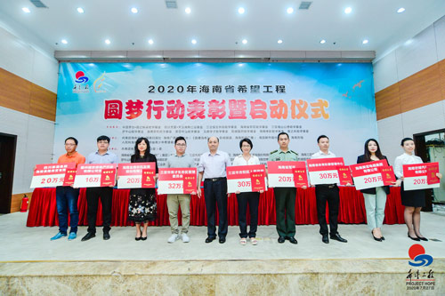 7月27日下午, 2020年海南省希望工程圆梦行动启动暨表彰仪式在海口举行。仪式现场,海南省体育彩票管理中心等爱心单位被授予“2019年海南省希望工程脱贫攻坚贡献奖”。为了支持2020年海南希望工程脱贫攻坚工作,帮助家庭贫困子女解决上大学难的实际问题,海南体彩在仪式现场捐赠30万元,持续助力海南省希望工程圆梦行动这一惠民工程。