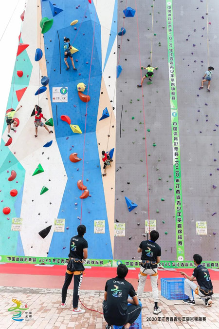 8月27日,“中国体育彩票杯”2020年江西省青少年攀岩锦标赛在赣州市全南县隆重开幕。来自全省各地的11支代表队共140余名运动员齐聚一堂,在飞“岩”走壁间展开巅峰对决。据悉,这也是常态化疫情防控期间,江西省恢复的首场全省性竞技体育赛事。