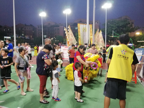 傍晚6时,锣鼓喧天,正式打响了公益体彩进社区的活动前奏,陆陆续续吸引了社区市民前来观看。醒狮与市民的互动,增添了不少欢声笑语,为夏日带来了不一样的欢乐体验。趣味游戏摊位更是吸引了不少男女老少的市民排队参加,玩游戏领取体彩小礼品。公益体彩进社区活动在宣传全民健身的同时,也与市民同乐齐分享公益事业的发展成果。